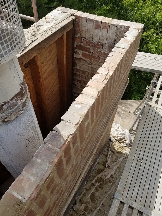 Alpha Construction & Restoration has successfully completed a project involving the restoration of a chimney. The project consisted of removing water damaged bricks and replacing with new face brick. Alpha Construction & Restoration was able to obtain the exact matching brick that matched the size, color and texture. The entire chimney was grinded and repointed. The existing cracked concrete chimney cap/crown was demolished. Temporary forms were installed and a new concrete chimney cap was poured to he required dimensions. At Alpha Construction & Restoration, we take pride in delivering quality construction projects that exceed our clients' expectations, and this project was no exception.